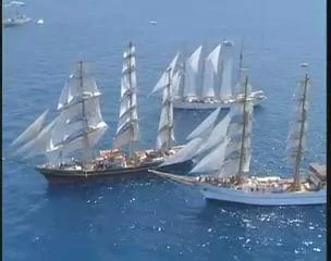 Des images aériennes du départ de la régate des grands voiliers entre Hyères et Gènes.