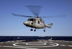 Un hélicoptère Français se pose sur le destroyer lance-missile. © Xinhua