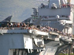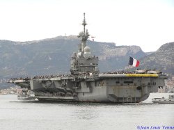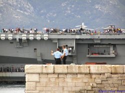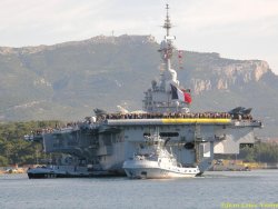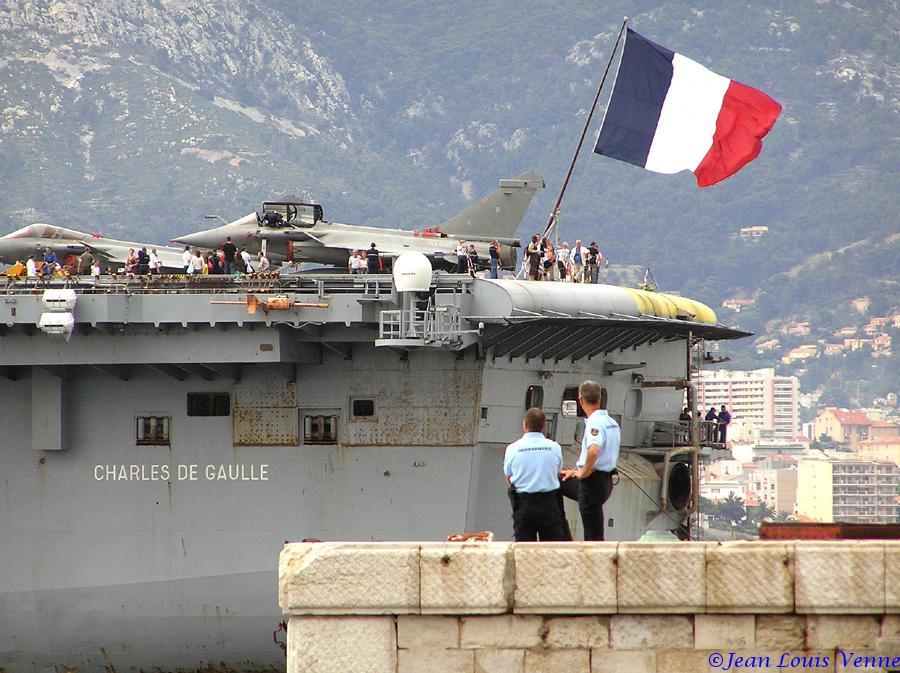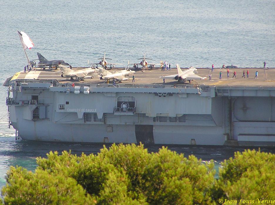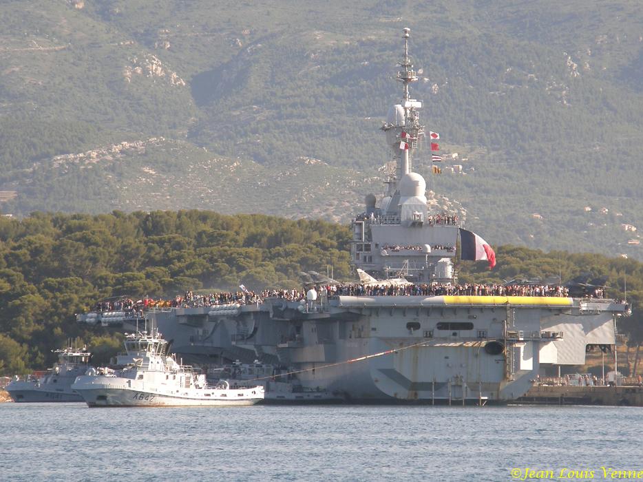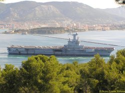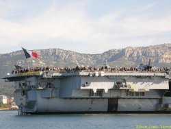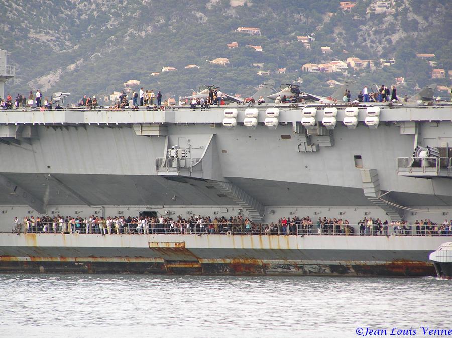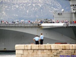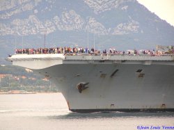C’était le 16 juin au matin, appareillage du CDG à 8h50, aidé par plusieurs remorqueurs. Il faisait un temps superbe. On a pû entendre la sono du bord : "Communication générale : Les invités étant actuellement à l’intérieur du bâtiment sont priés de se rendre sur le pont d’envol pour assister à l’appareillage qui aura lieu à 8h50" Ainsi ce sont 2000 personnes qui étaient sur le pont.