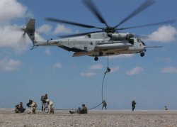 Le 464è bataillon d’hélicoptères lourds des Marines a assisté le 22 octobre des démineurs Américains et des commandos de marine Français lors d’une session de descente en rappel depuis un hélicoptère sur une base Française de Djibouti.