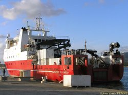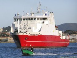 Un navire océanographique espagnol, lancé en 2006, le Sarmiento de Gamboa, est arrivé ce dimanche à La Seyne sur mer. Il appartient au conseil supérieur de la recherche scientifique espagnol.