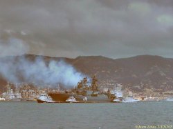 Le destroyer « Admiral Chabanenko » et le pétrolier « Sergey Osipov » sont arrivés tôt ce lundi à Toulon. Le temps était couvert et le jour se levait. Pourtant, Jean-Louis Venne a réussi à prendre de superbes photos.