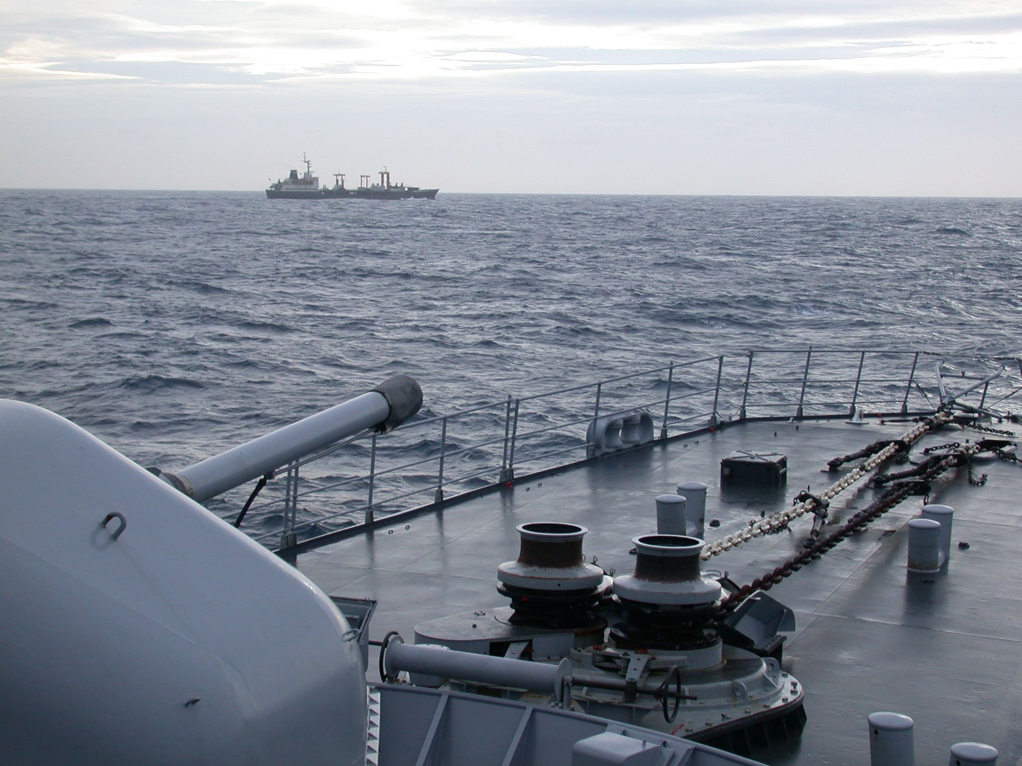 Malgré des conditions météo peu clémentes et des habitudes de travail différentes, les équipages russes et français ont oeuvré efficacement à la réussite de cette manoeuvre, grande première entre nos deux marines.