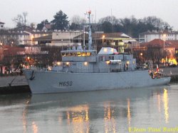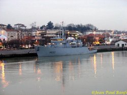 Evènement assez rare, le chasseur de mines Sagittaire est arrivé vendredi matin à Bayonne en remontant l’Adour. Il finissait d’accoster (fin du poste de manœuvre) vers 08h00, pour se mettre à quai Edmond Foy. Photos de Jean-Paul Banfi, merci à Jean-Louis Venne de me les avoir transmises.