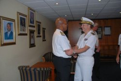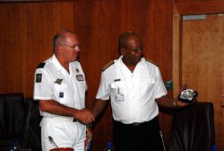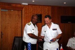 Le commandant des forces navales françaises en océan Indien, le contre-amiral J. Launay, et sa délégation ont visité le 24 janvier l’état-major de la marine Sud-Africaine. Ils ont été chaleureusement accueillis par le chef d’état-major, le contre-amiral M.H. Magalefa, au nom du commandant de la marine, le vice-amiral J. Mudimu.