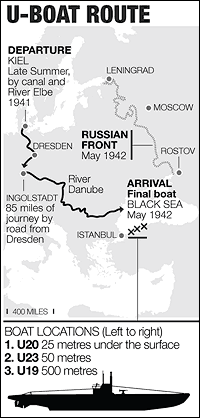 Lorsque la Roumanie a changé d’alliance, les équipages ont reçu l’ordre de se saborder hors de vue des Turcs afin que la position des sous-marins puisse rester un mystère. M. Kolay a été aidé par une carte dessinée par Rudolf Arendt, 85 ans, l’ancien commandant du U-23, montrant où son équipage avait touché terre.