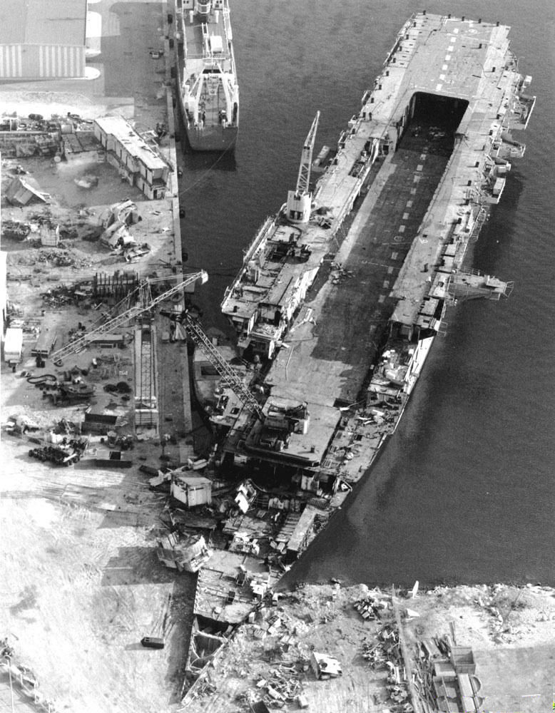 Il a obtenu l’autorisation du directeur du chantier de démolition d’aller à bord pour ses photos, photos en noir et blanc qu’il développait le soir dans sa cuisine. Il a aussi pû survoler le PA en hélicoptère pour photos.