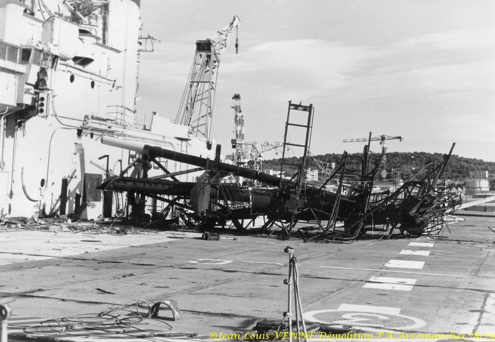 L’Arromanches (ex-Colossus) est un porte-avions français, anciennement britannique, lancé en 1943 et ferraillé en 1978. Il fut rebaptisé en mémoire du débarquement du 6 juin 1944. A cette époque, Jean-Louis Venne se trouvait à la BAN St Mandrier et il a pû suivre sa démolition à Brégaillon (port de La Seyne).