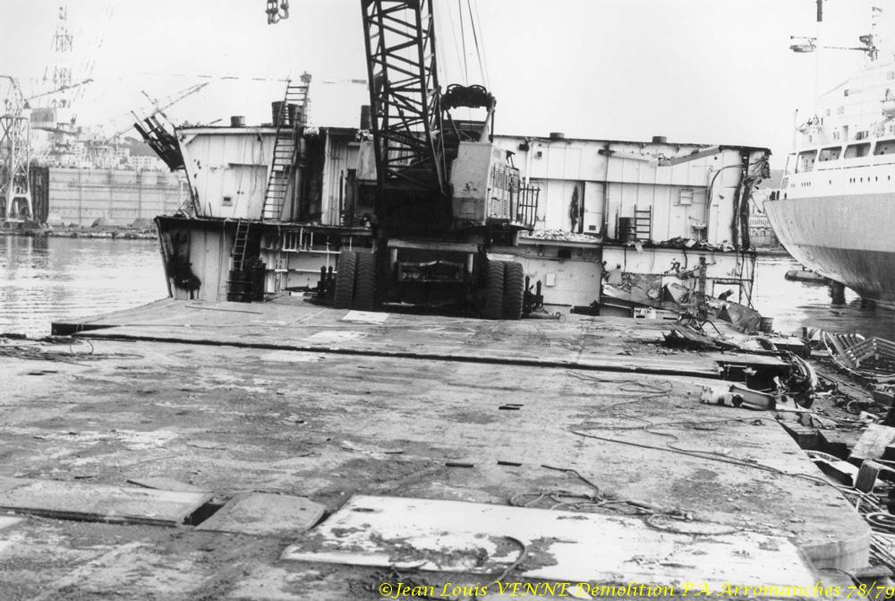 Il a obtenu l’autorisation du directeur du chantier de démolition d’aller à bord pour ses photos, photos en noir et blanc qu’il développait le soir dans sa cuisine. Il a aussi pû survoler le PA en hélicoptère pour photos.