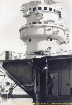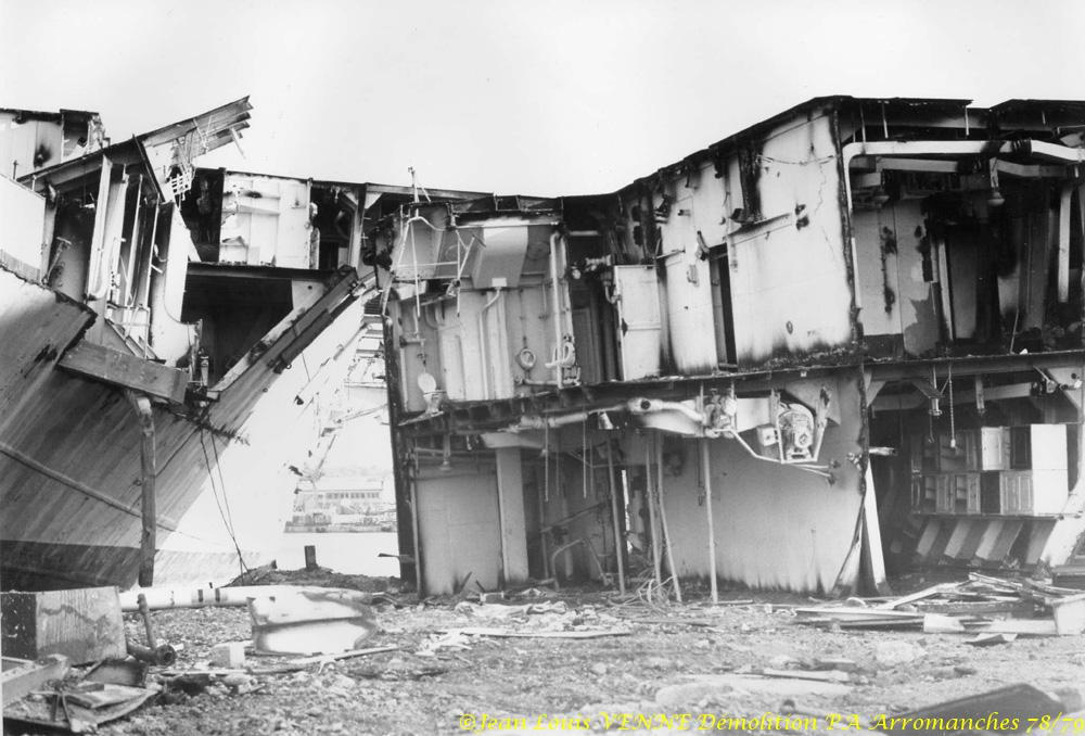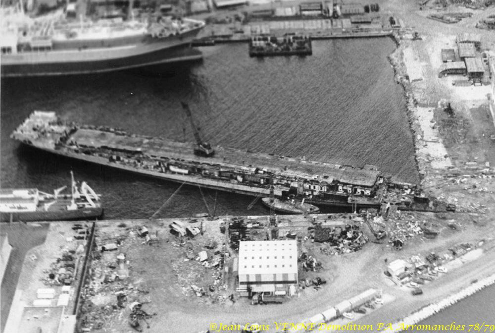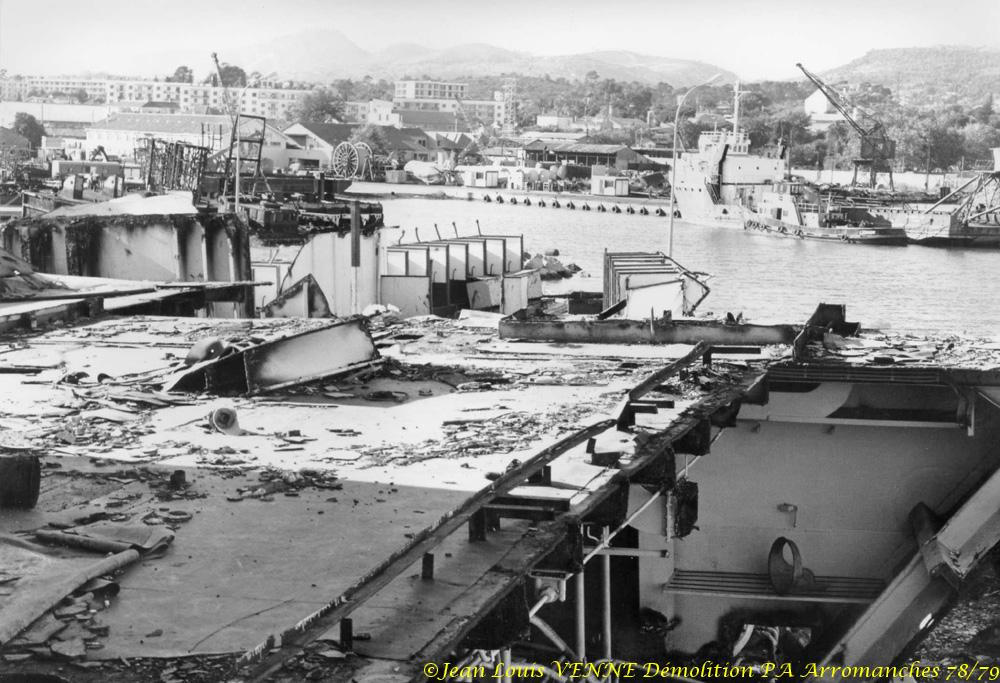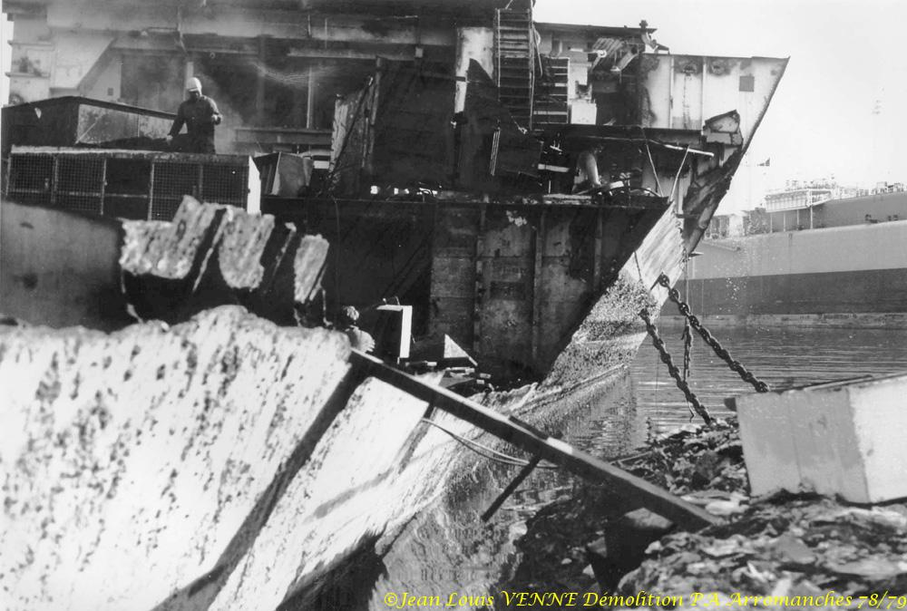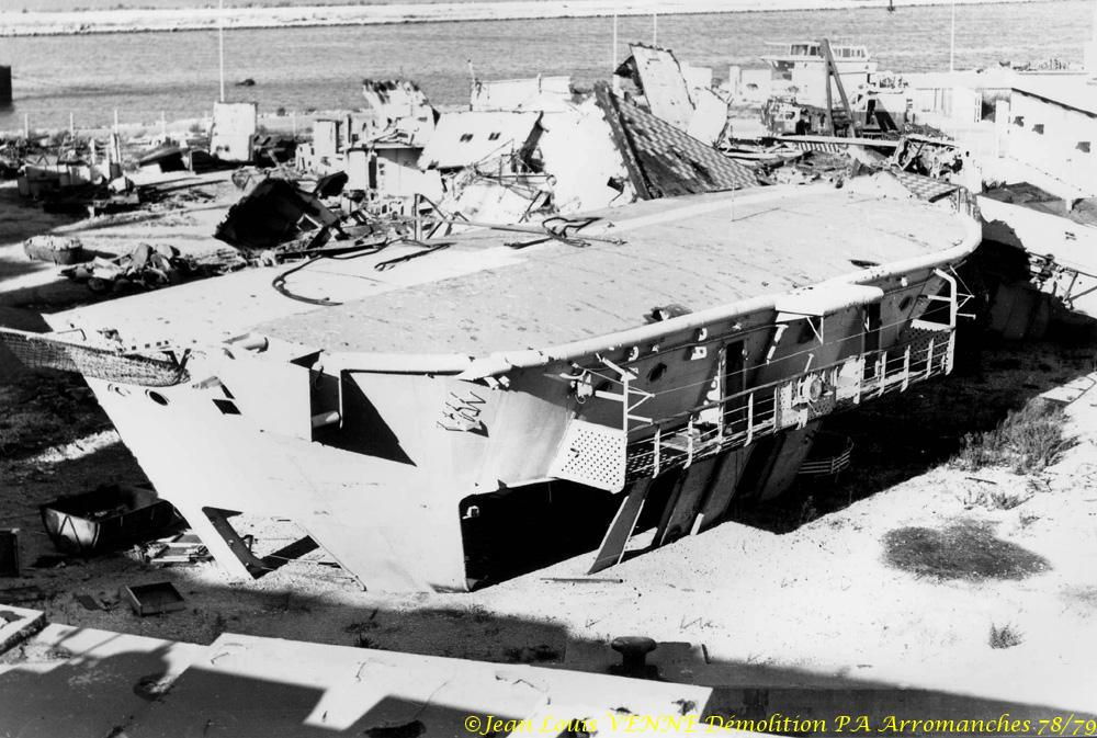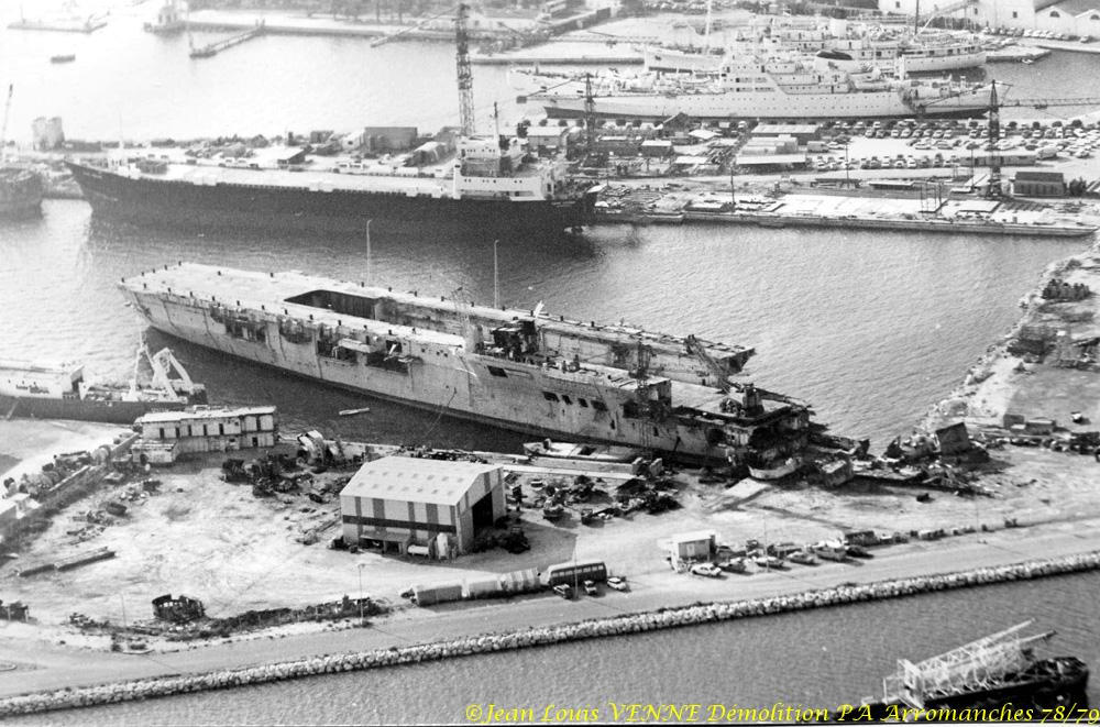 L’Arromanches (ex-Colossus) est un porte-avions français, anciennement britannique, lancé en 1943 et ferraillé en 1978. Il fut rebaptisé en mémoire du débarquement du 6 juin 1944. A cette époque, Jean-Louis Venne se trouvait à la BAN St Mandrier et il a pû suivre sa démolition à Brégaillon (port de La Seyne).