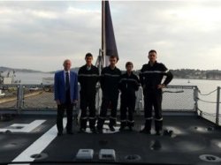 Entourée par l’état-major du Surcouf. © CECMED / Marine Nationale