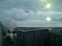 Un bruit sourd provenant du ciel se fait entendre. Quelques secondes plus tard, le navire tout entier vibre et un son fracassant parvient aux oreilles. Il est 14h, et le premier tir missile d’une longue série vient d’être lancé.