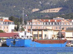 Voici des images du vraquier Natissia prises jeudi matin après son arrivée dans le port militaire de Toulon.