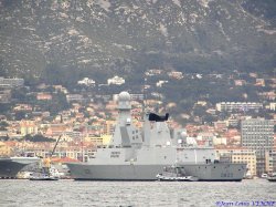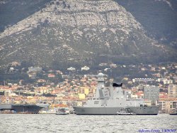Jean-Louis a pu prendre ces photos de la frégate FORBIN sur fond d’écran toulonnais.