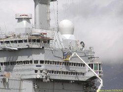 Les échafaudages sont presques tous ôtés. La peinture de l’îlot/passerelle a commencé.