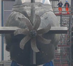 Ce qui reste longtemps dans l’eau, devient rapidement recouvert de coquilles, d’algues et d’autres animaux marins. Les salariés de HDW peuvent désormais de près ce que cela donne au bout de 2 ans malgré un revêtement extérieur le plus moderne. Le sous-marin grec Papanikolis, qui se trouvait depuis 2 ans à Kiel, a été mis au sec à la fin mars.