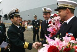 Voici quelques photos trouvées sur des sites chinois. Elles ont été prises lors de l’arrivée en Chine du Mistral et du Dupleix.