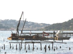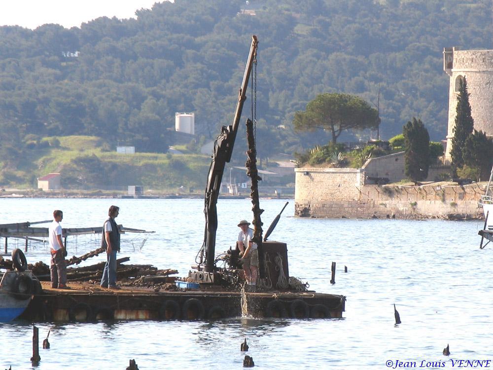 Dans l’anse du Balaguier à La Seyne-sur-mer, des pieux ont soutenus pendant des années les parcs à moules. Certains sont aujourd’hui à l’abandon et constituent un danger pour l’environnement et la navigation. Ils sont donc retirés avec toutes les précautions d’usage.