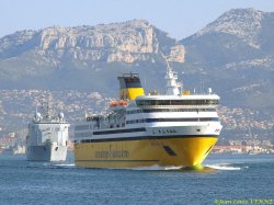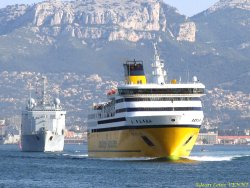 Le premier à sortir a été le BPC Tonnerre à 7h30. Puis l’aviso Cdt Ducuing. Suivi par le TCD Foudre qui a laissé passer le Corsica Ferry. Ensuite le TCD Siroco. Le PR Meuse un peu plus tard.