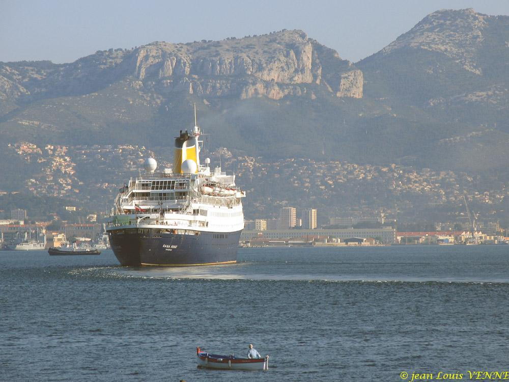 Escale à Toulon du paquebot, bien connu des Toulonnais.