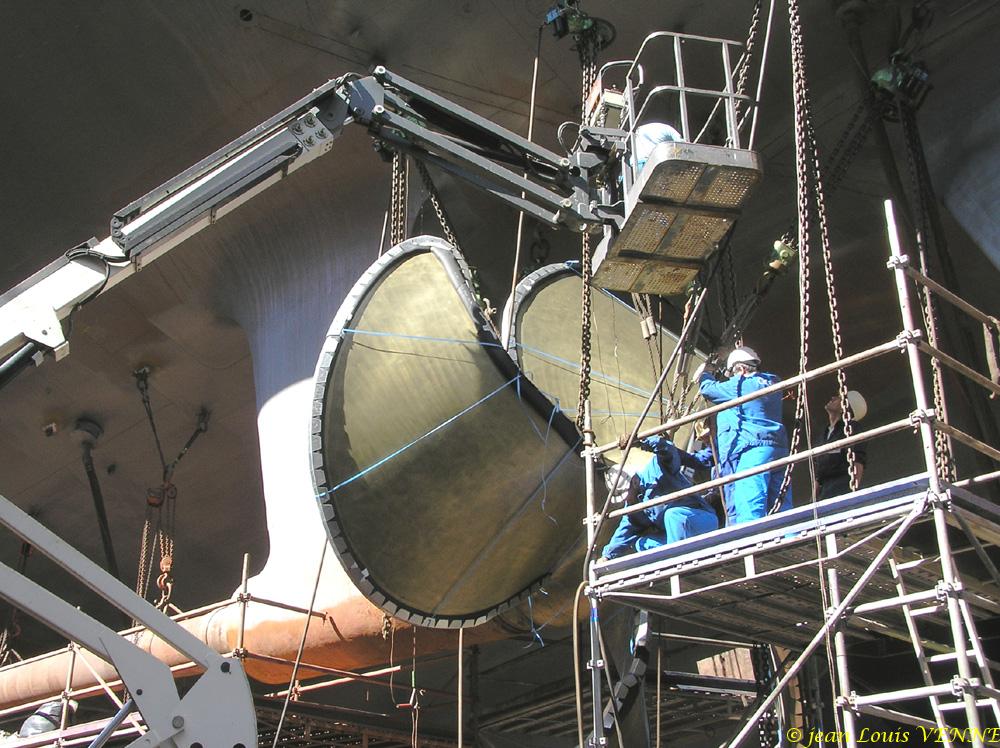Jean-Louis Venne a été invité à assister à la pose de la seconde hélice du porte-avions. Il a pris de nombreuses photos : les voici.