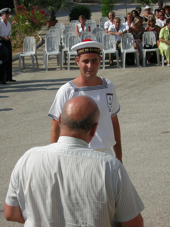 Une mention spéciale pour l’un des élèves du BAT : il a reçu son insigne et son diplôme des mains de son grand-père et de son père, tous les 2 plongeurs-démineurs avant lui.