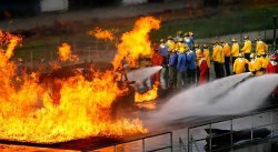 Des stagiaires éteignent un incendie d’hélicoptère. ©Stephen M. Katz / The Virginian-Pilot