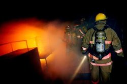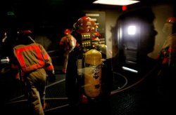 La première équipe d’intervention est descendu dans le local mais a dû s’arrêter lorsque son tuyau s’est bloqué dans une échelle. Quelques minutes plus tard, les 2 équipes se tenaient dos à dos, essayant d’éteindre les flammes avec des lances envoyant 360 litres à la minute.