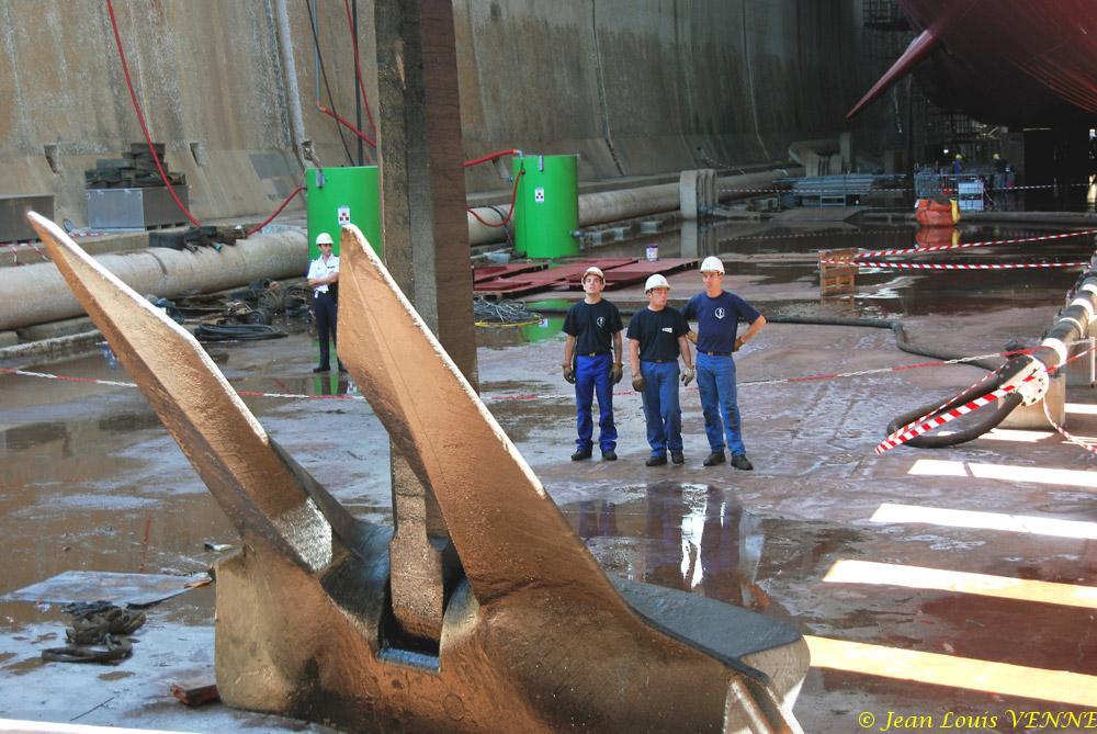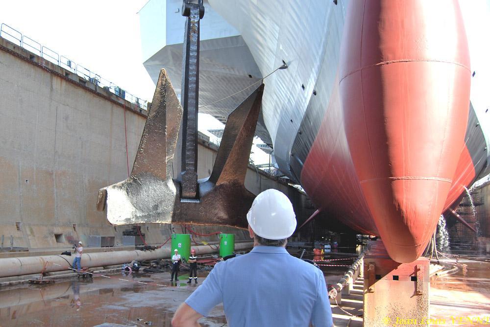 A bord du porte-avions Charles de Gaulle, les travaux de l’IPER se poursuivent pendant l’été. Ainsi, on procède actuellement au remontage des lignes de mouillage.